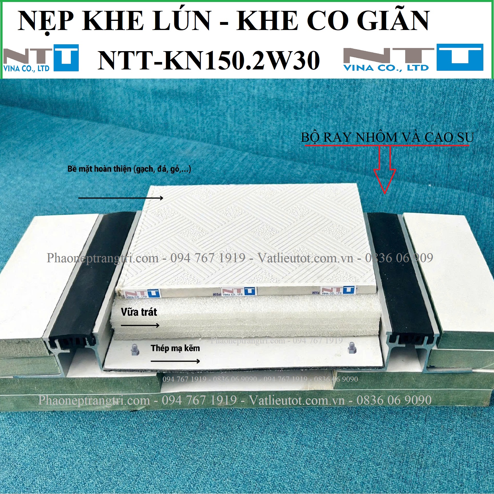 Khe lún – khe co giãn – khe nhiệt đối với các công trình hiện đại là không thể thiếu nhằm đảm bảo kết cấu bền vững và tránh nứt gãy do biến dạng. Nhằm mang đến giải pháp đồng bộ cho cả khe sàn – khe tường – khe góc, Công ty TNHH Sản Xuất Thương Mại và Xây Dựng NTT Việt Nam giới thiệu bộ sản phẩm nẹp khe lún NTT-KN150.2W30 & NTT-KN150.UI – hai mã nẹp chuyên dụng được thiết kế với khả năng chịu co giãn, lún và biến dạng nhiệt tối ưu, thích hợp cho nhiều vị trí trong cùng 1 hệ kết cấu công trình.