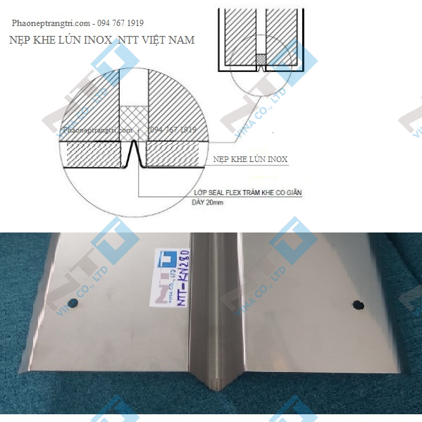 Nẹp khe lún inox / nẹp co giãn inox – giúp che khe, chống nứt và tăng thẩm mỹ hoàn thiện.