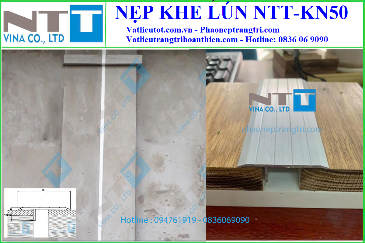 Nẹp khe lún KN50 là sản phẩm nẹp kỹ thuật chuyên dùng để xử lý khe lún, khe giãn nở có bề rộng nhỏ trong các công trình xây dựng. Nẹp giúp che phủ khe hở, cho phép kết cấu co giãn linh hoạt, đồng thời bảo vệ bề mặt hoàn thiện và nâng cao tính thẩm mỹ cho sàn, tường và các khu vực chịu tải trọng