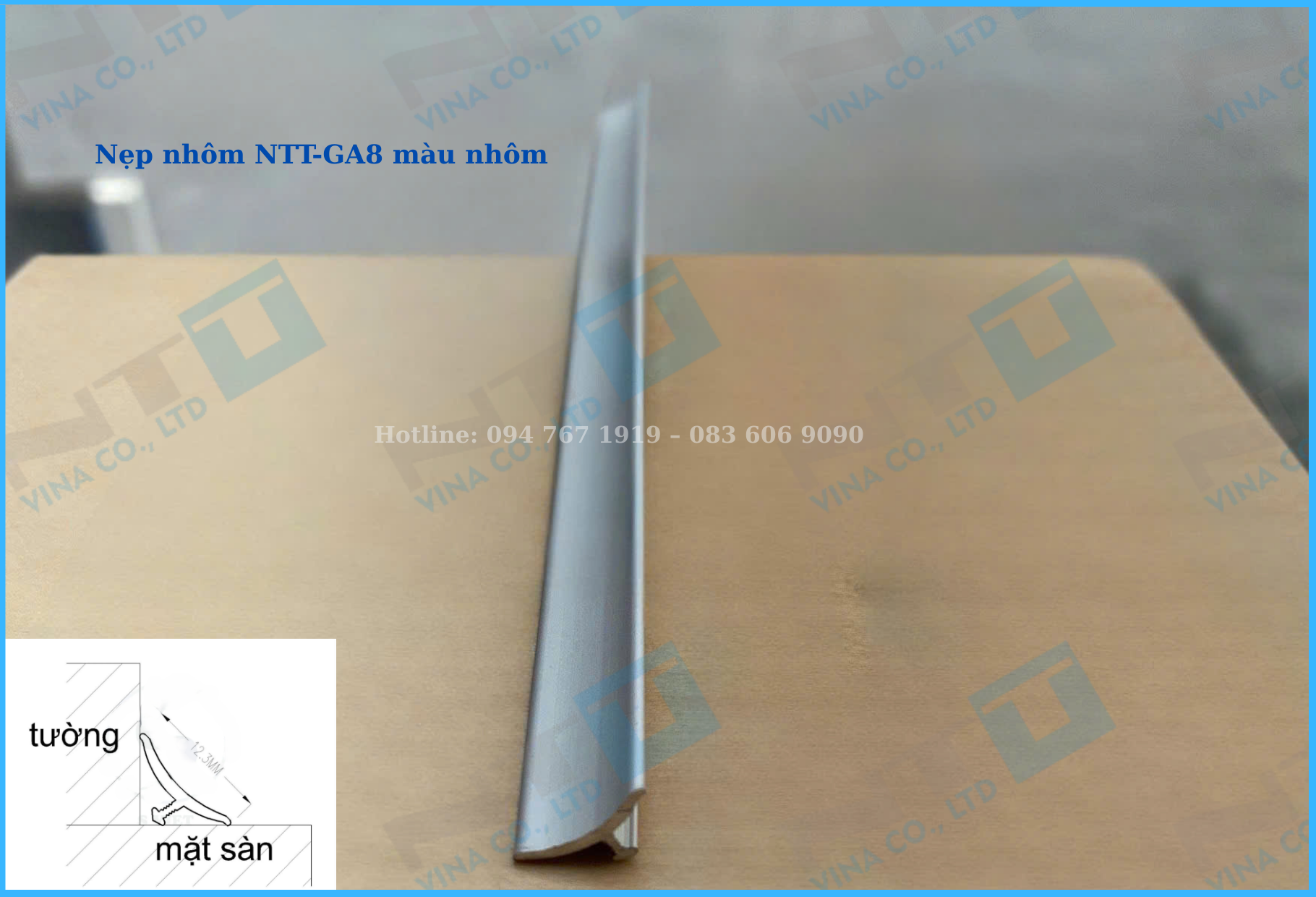 Nẹp nhôm GA8 do Công ty NTT Việt Nam sản xuất là dòng nẹp trang trí chuyên dụng, được sử dụng để xử lý khe hở, bo góc và tạo điểm nhấn thẩm mỹ cho bề mặt gạch, đá, gỗ, hoặc các loại vật liệu hoàn thiện khác. Với thiết kế nhỏ gọn, hiện đại, GA8 giúp công trình thêm sang trọng và bền đẹp theo thời gian.