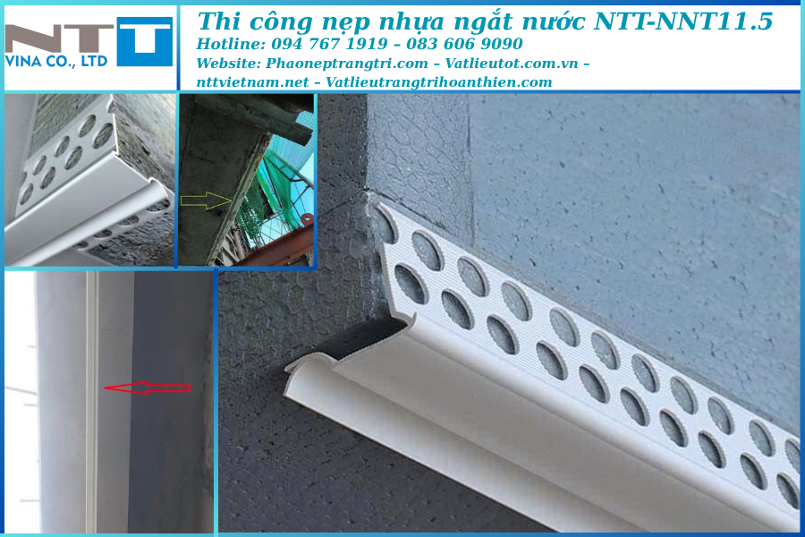 Các khu vực ngoài trời của những công trình xây dựng luôn có tình trạng nước mưa chảy ngược vào tường gây thấm, ố vàng, bong tróc sơn. Để khắc phục triệt để vấn đề này, nẹp nhựa ngắt nước tròn có cánh lưới NTT-NN10T của NTT Việt Nam là giải pháp được nhiều kỹ sư, nhà thầu tin tưởng.