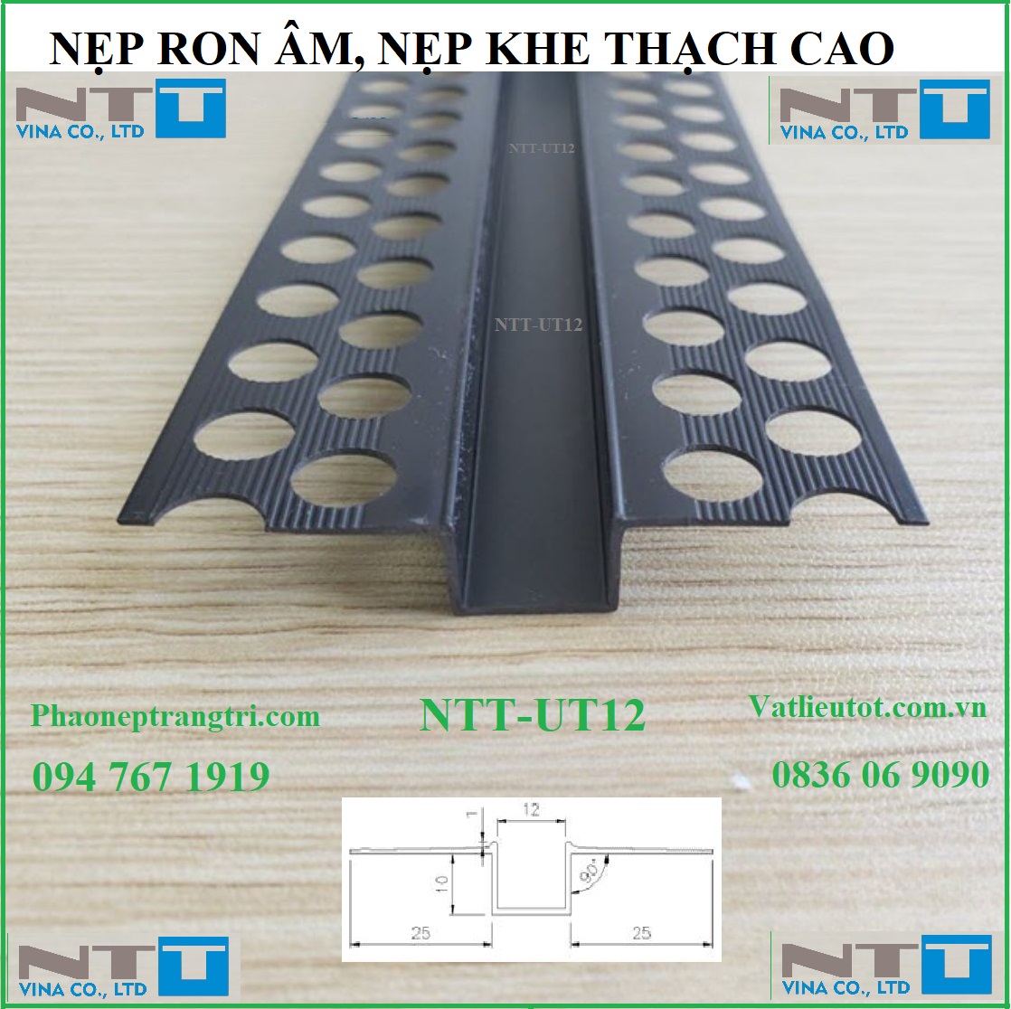 • Tên sản phẩm / Mã: Nẹp ron âm trần thạch cao / nẹp khe co giãn trần thạch cao – NTT-UT12 là một trong các mẫu tiêu biểu.