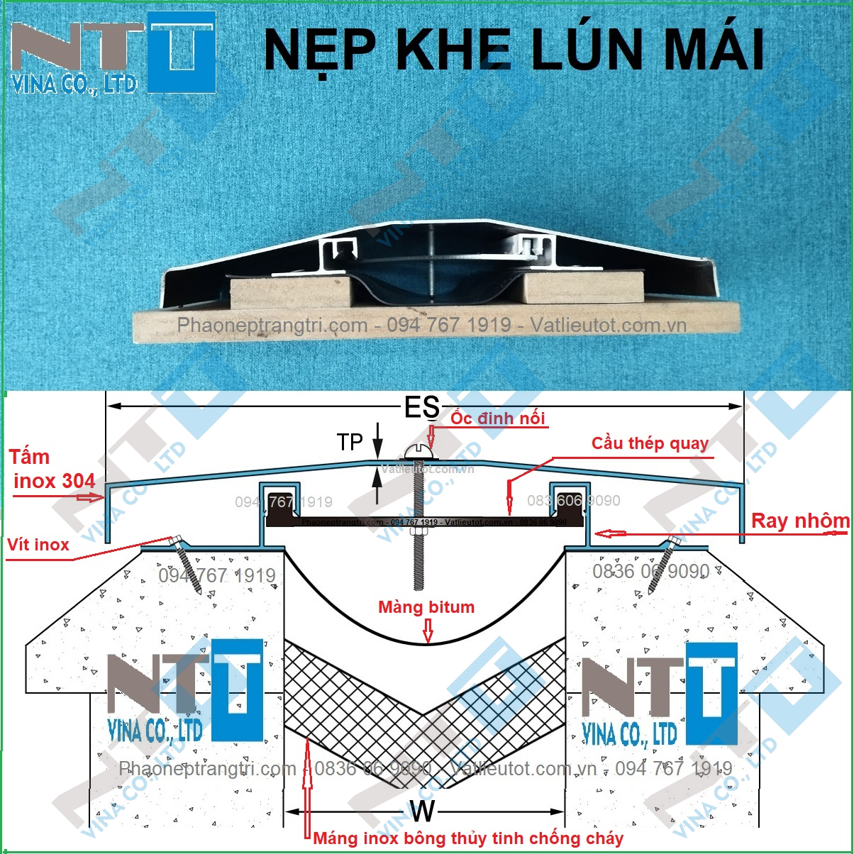 Các bộ nẹp inox khe lún/ khe co giãn mái thường bao gồm: